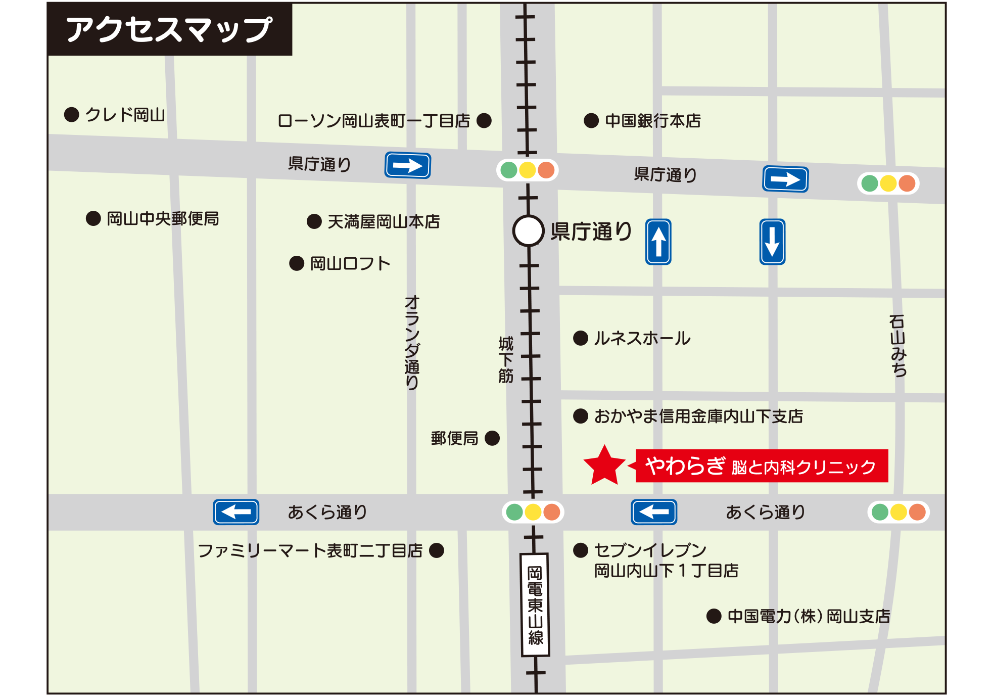 岡山電気軌道 路面電車 東山線 県庁通り電停下車 徒歩5分